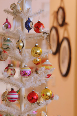A feather tree with my childhood ornaments sits on our family room coffee table. I can remember a time when I hated these ornaments. I wanted newer ones, different ones, and I kept these in a box in the garage for the longest time. Then one day I took them out, hung them on this tree and knew that they were somehow beautiful. Funny how that happens!